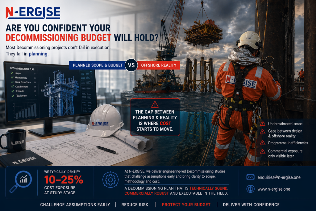 At N-ERGISE, we focus on closing this gap through engineering-led decommissioning studies that challenge assumptions early and bring clarity to:
