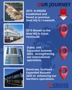 - Lowestoft (2015) – Established at the former Shell headquarters, laying the foundations for N-ERGISE’s engineering, project support and offshore services.